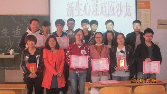 11月6日下午,思政部心理咨询中心组织的新生适应心理沙龙在2号教学楼2411教室顺利举办,标志着我院第八届大学生心理健康教育宣传周活动圆满结束。心理协会会员、2014级部分新生共计60余人参加活动。
