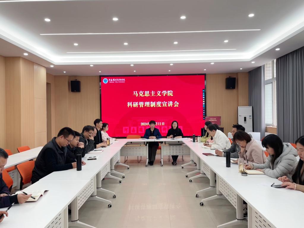 为深入学习贯彻学校科研管理制度改革精神,提升思政课教师科研积极性和主动性,11月11日下午,马克思主义学院在行政楼510会议室召开了科研管理制度宣讲会,全体思政课教师参会,院长兼党总支书记梁杰主持并讲话。