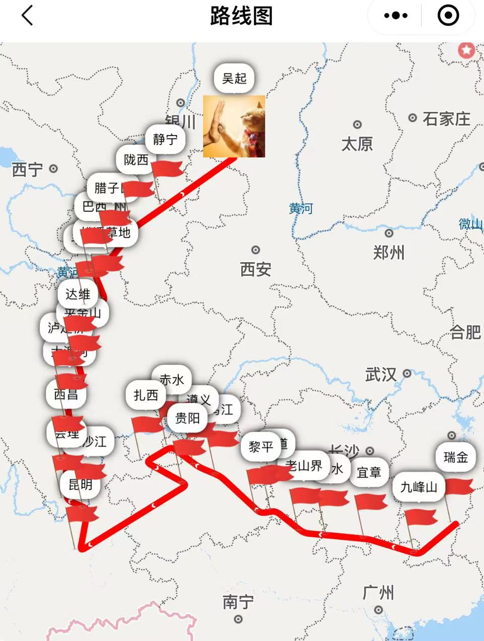 此次活动通过微信“线上云接力”小程序进行创建,采取线上线下相结合的方式,参与者关联微信运动后将每日健步走数据换算到定制的长征路线图上,每到达一个地点,都会有这个点位的重要历史事件和人文知识介绍,通过寓教于乐的方式将弘扬长征精神和学习人文知识、强身健体融为一体。