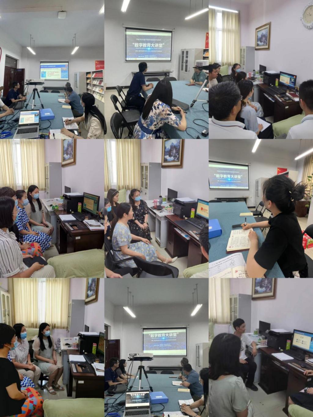 在马克思主义学院领导班子的周密安排下,全院教师以教研室为单位,通过线上学习的方式观看了“数字教育大讲堂”系列讲座,华中师范大学教授吴砥、教育部科学技术与信息化司讲师潘润恺和华南师范大学教授胡小勇分别从教师数字素养提升、数字教育时代网络安全形势、人工智能赋能教育变革与发展三方面进行报告分享。