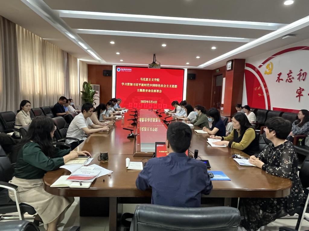 5月4日下午,马院在行政楼332会议室召开学习贯彻习近平新时代中国特色社会主义思想主题教育动员部署会,全体思政课教师党员参会,会议由党总支书记马金伟主持。