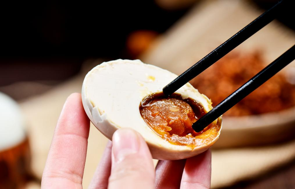 腌蛋以高邮为佳,颜色细而油多,高文端公最喜食之。席间,先夹取以敬客,放盘中。总宜切开带壳,黄白兼用;不可存黄去白,使味不全,油亦走散。