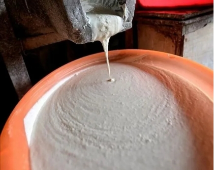 5. Fermenting: Scoop out the raw mung bean milk and add the starter. Allow it to ferment.