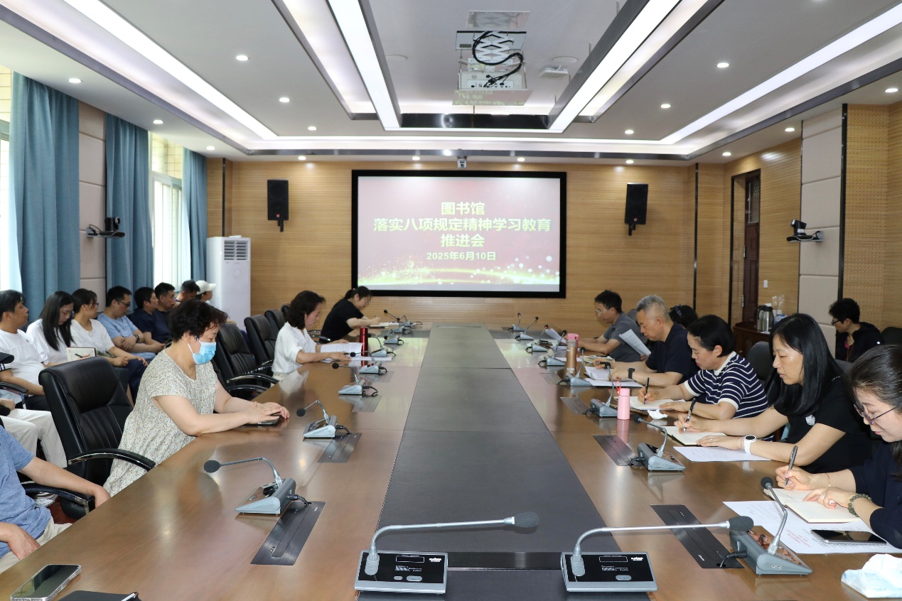 为深入贯彻党的群众路线,进一步加强图书馆的作风建设,深化落实中央八项规定精神,图书馆于6月10日召开了“落实中央八项规定精神学习教育推进会”。会议旨在通过学习教育,引导全体馆员深化对中央八项规定精神的理解,以实际行动推动图书馆各项工作的健康发展。