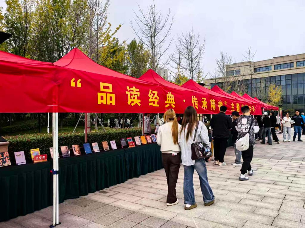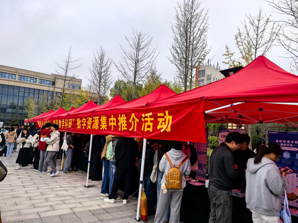 活动现场,展出了多种类图书与数字资源,内容涵盖党建类、技能人才类、营销管理类、创新创业类和文学类等多个领域的经典著作和最新出版书籍。既有《中国共产党百年学习史》《抗日战争专题研究》,也有《中国儒学三千年》。数字资源展示区有电子图书、有声读物、在线数据库、多媒体学习资源等。多元资源汇聚,打造新的阅读方式。