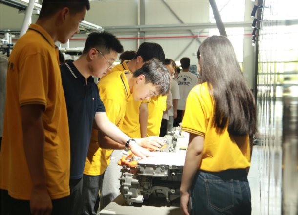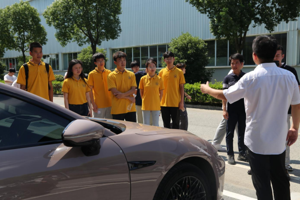 接着第四站是“合众新能源汽车股份有限公司”,该公司专注于高品质智能互联新能源整车的研发和生产,是一家集创新设计、产品研发、生产制造和销售服务于一体的高新技术企业,同时也是新创车企中唯一一家具有“双资质”、“双工厂”的企业。在负责人的带领下,实践团成员们深入生产一线,参观了智慧工厂的总装车间,对汽车的自动化生产流程以及订单式个性化制造过程有了更全面的了解,同时近距离观摩了他们所生产的最新款汽车哪吒S,对汽车的创新技术和优越性能有了进一步的了解。