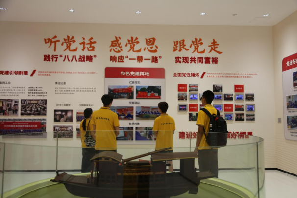 本次桐乡之行的最后一站,实践团队来到了“桐昆集团”,这是一家横跨石油炼化、PTA、聚酯、涤纶长丝、新材料、物流、酒店、房地产、综合投资等多元领域的综合性控股集团,位列2022中国企业500强第223位。在工作人员的带领下,队员们参观了企业四十多年的发展历程,从诞生、转型、崛起,再到与国际接轨,在一次次的跨越、一次次的创新中,队员们深受触动。随后,队员们来到了企业产品的展示区,见到了享誉国内外的涤纶长丝、聚酯切片及产业链一体化数智运营中心,让人颇为震撼。面对获得的各种荣誉,桐昆集团始终不忘初心,秉承“团结,拼搏,务实,创新”的企业精神,“行纤维之事,利国计民生”,为青年创业就业树立了典范。