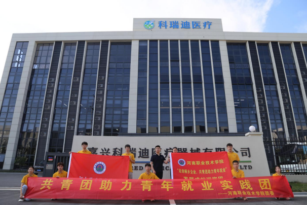 第三站是“嘉兴科瑞迪医疗器械有限公司”,这是一家广泛应用于医院、血站、生命科学实验室、食品安全、疾控等领域血液检测的自动化产品的研发及生产的企业。通过观看介绍视频以及企业负责人的详细讲解,实践团成员们进一步了解了企业的整体发展情况以及人才需求方向。