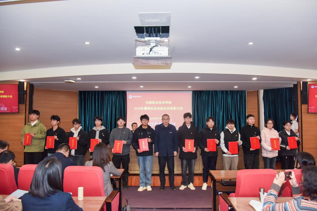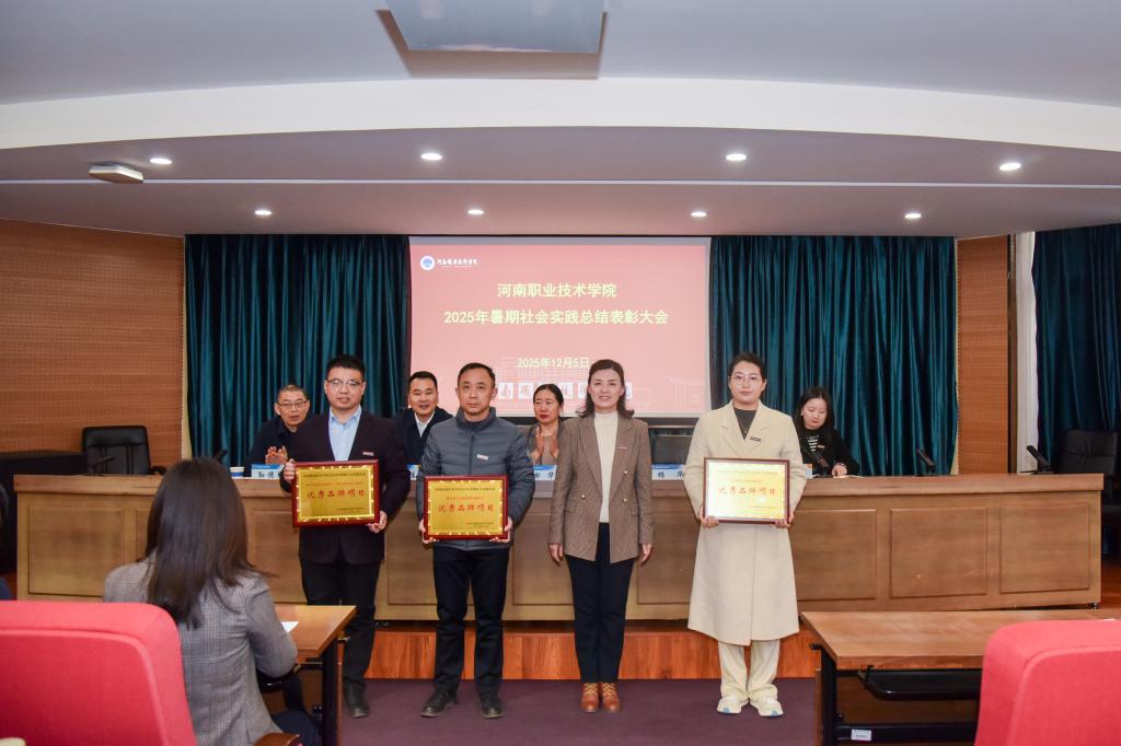 会议总结了学校2025年暑期社会实践活动整体开展情况,宣读了《中共河南职业技术学院委员会关于表彰2025年暑期社会实践活动先进集体和个人的决定》,颁发了暑期社会实践表现突出单位优秀组织奖、优秀品牌项目、优秀指导教师、优秀实践个人牌匾和证书。