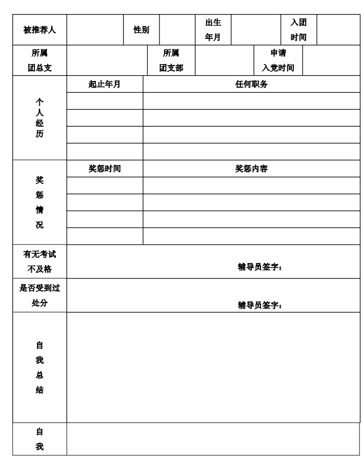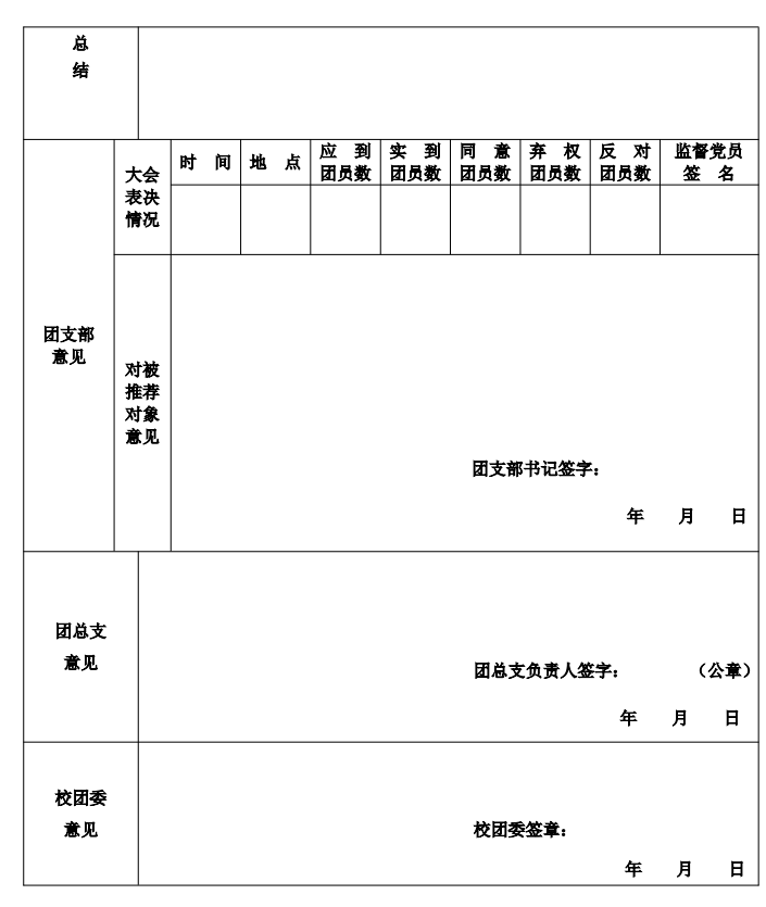 第八条“推优”大会后由团支部书记指导推荐对象填写由校 团委统一印制的《河南职业技术学院优秀团员作为入党积极分子推 荐表》(以下简称《推荐表》,样表见附件),团支部书记负责填 写“推优”大会表决情况、对被推荐对象意见,并上交至二级学院 团总支。