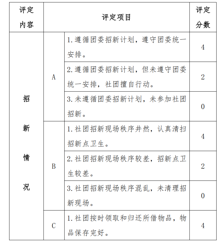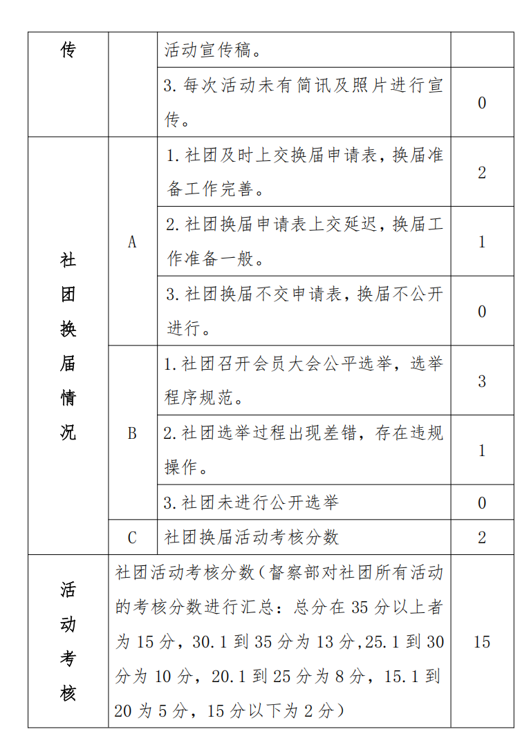 90 分)可评为五星级学生社团,80 分—90 分者可评为四星级学