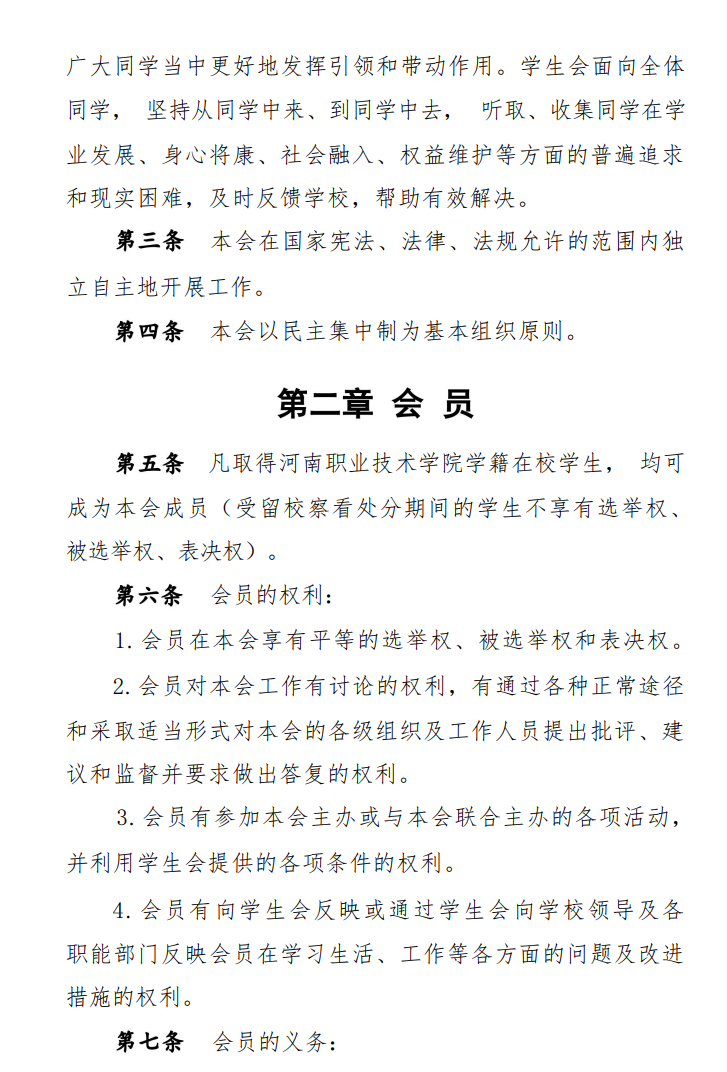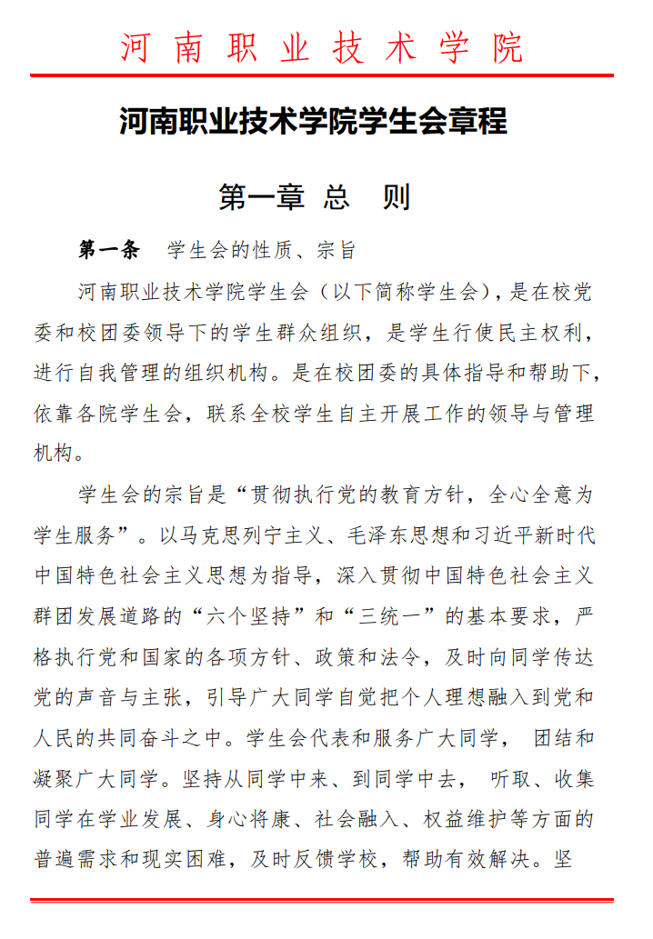 河南职业技术学院学生会章程