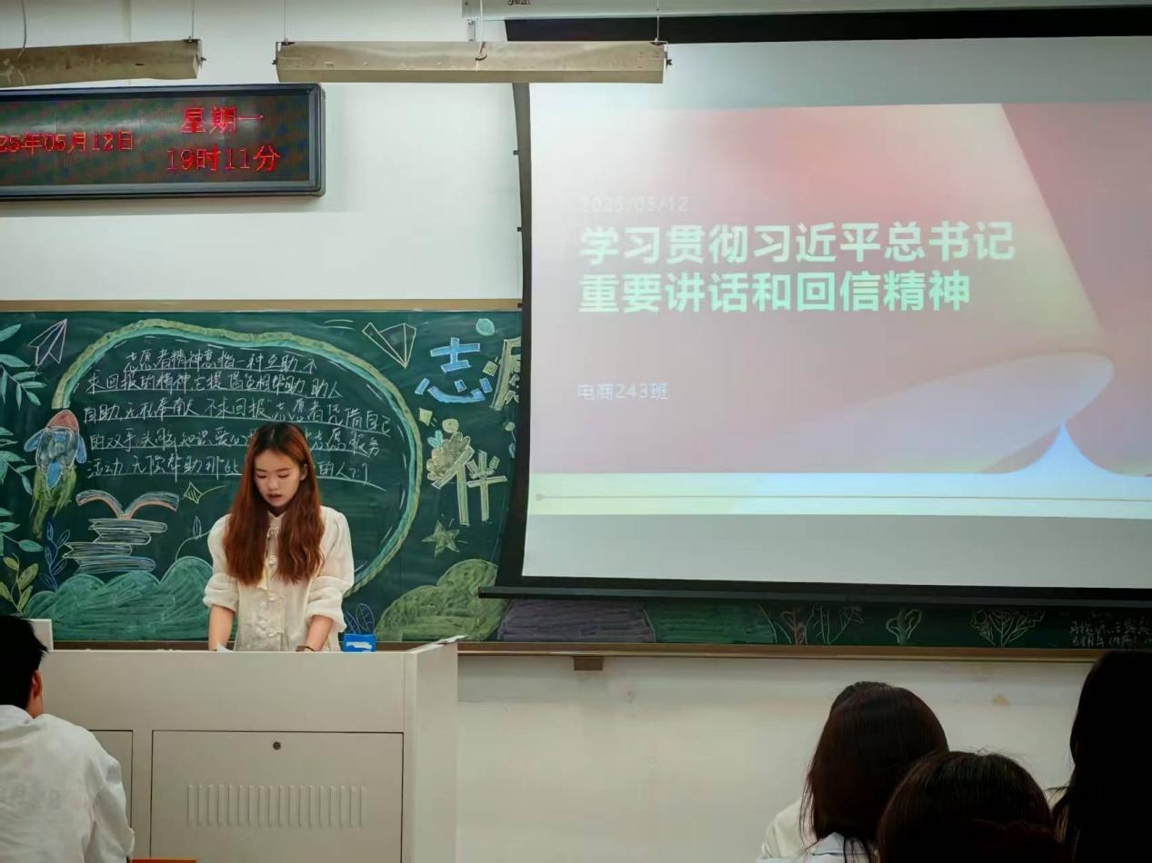 为进一步激励广大青年坚定理想信念,勇担时代使命,为中国式现代化建设贡献青春力量,5月12日—16日,经济管理学院2024级各班以团课的形式,学习习近平总书记给谢依特小学戍边支教西部计划志愿者重要回信精神主题团日活动。