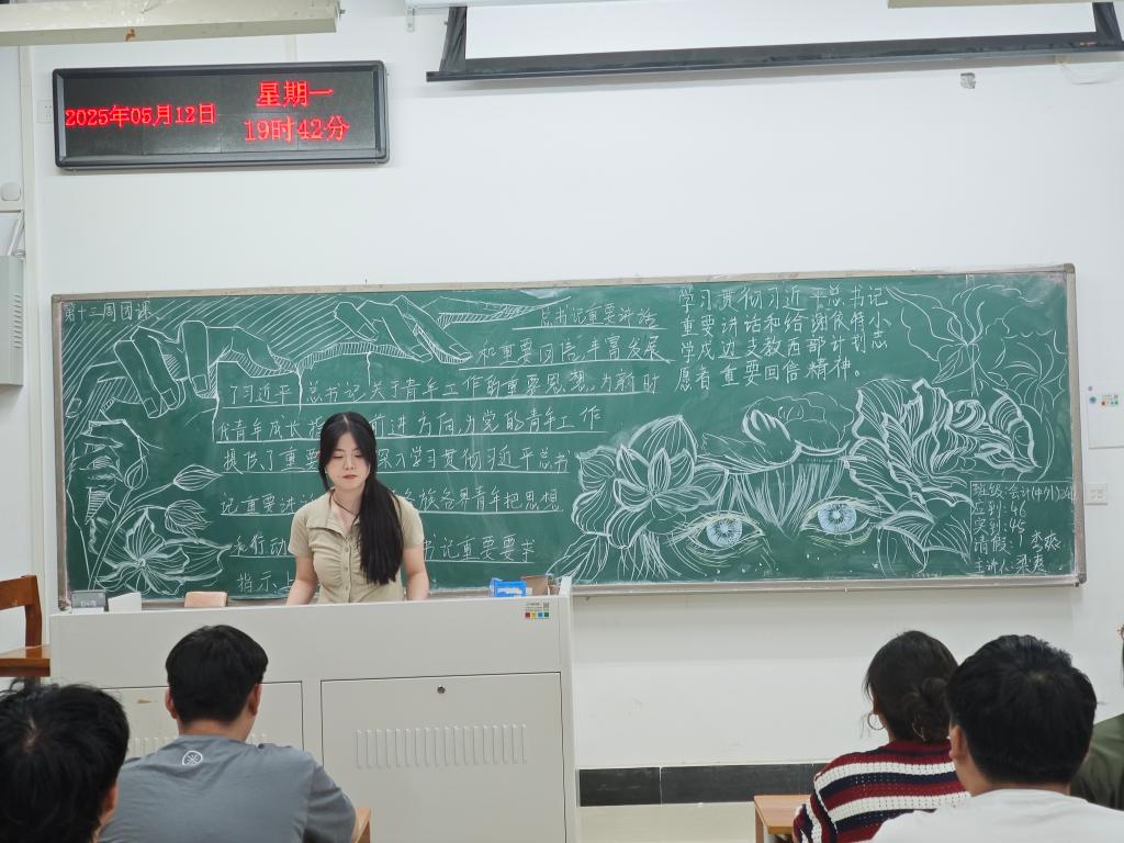 团课开展过程中,各团支部积极创新学习形式,营造了浓厚的学习氛围。其中,会计(中外)242团支书梁爽同学在讲台上担任主讲人,她以饱满的热情、洪亮的声音,通过播放生动视频、巧妙提问、积极互动等方式,极大地调动了同学们的参与热情,现场学习氛围热烈。计应(中外)242班的主题团课组织得有条不紊,会场秩序井然,教室环境整洁干净,为同学们打造了一个舒适、专注的学习空间。