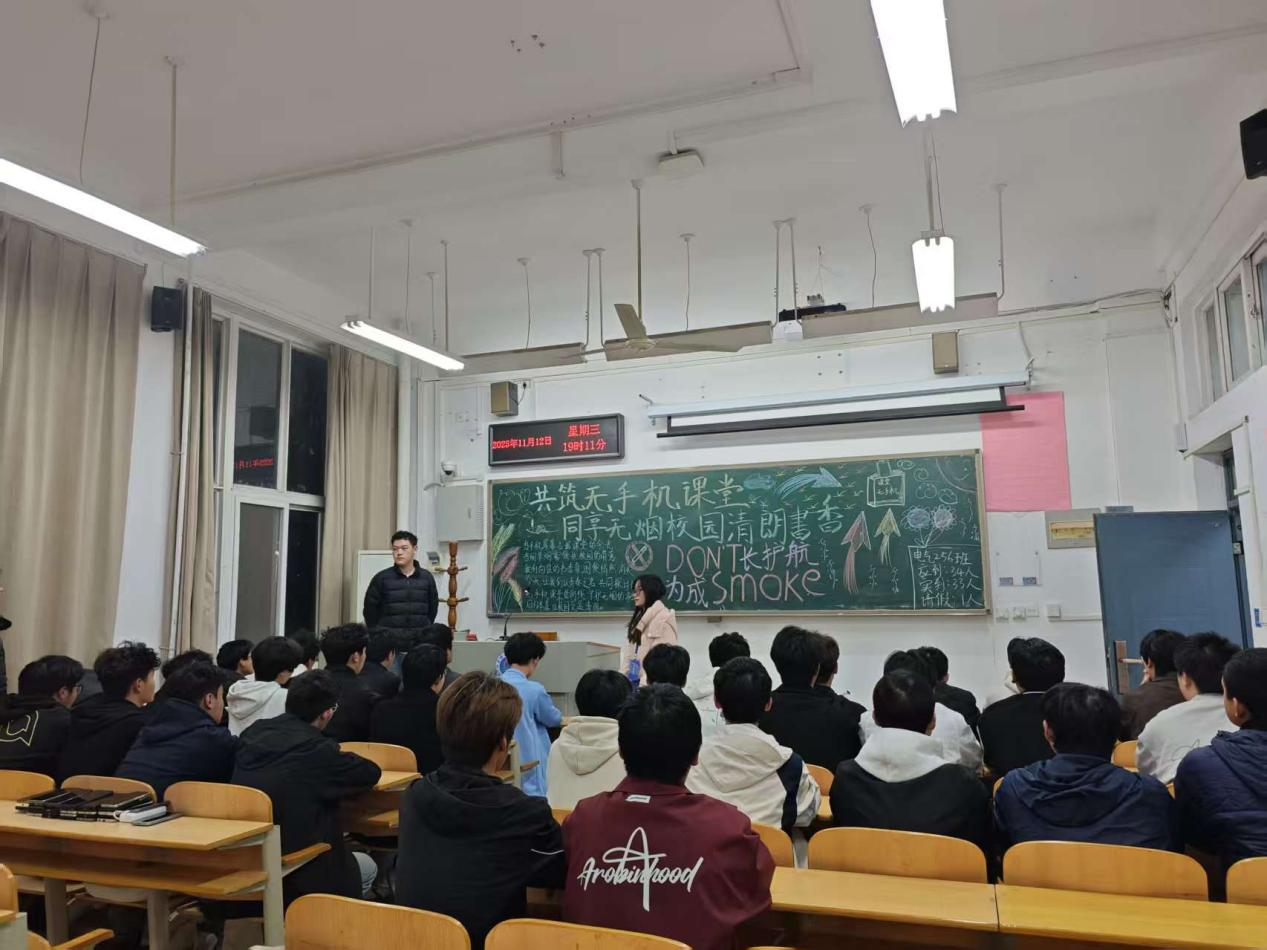 在学习环节中,各班团支书首先通过展示科学数据分析结果,让同学们直观感受课堂上使用手机对学习效率的影响,呼吁大家自觉遵守课堂纪律;其次用鲜明案例使同学们深入了解烟草危害身心健康,远离烟草诱惑,共同守护专注高效的学习环境与清新健康的校园生态;最后以习近平总书记重要回信精神为核心,通过视频学习,让同学们深刻领会“将小我融入大我”的时代内涵,扎根边疆献青春。在互动环节中,同学们纷纷表示会主动践行“课堂无手机、校园无烟”的行为准则,用专注态度夯实学业基础、用健康习惯滋养成长之路;也会以习近平总书记嘱托为动力,把个人理想融入国家发展大局,在艰苦奋斗中增长才干,在服务奉献中实现价值。