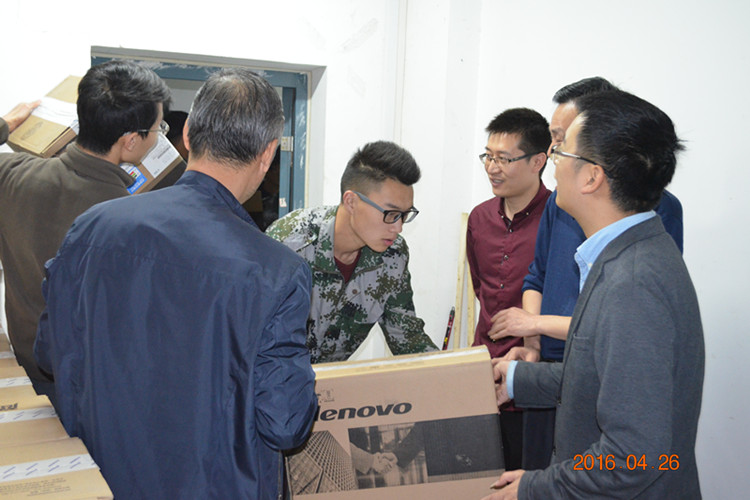 2016年4月26日-27日,由校产处、信息系和供货公司组成的临时发放小组在电教楼二楼204室统一发放教学单位办公备课用台式计算机。发放现场秩序井然,学院各教学单位按照发放流程一一在签字台登记后排队领取。发放工作组织有序,流程清晰,按时顺利完成任务。