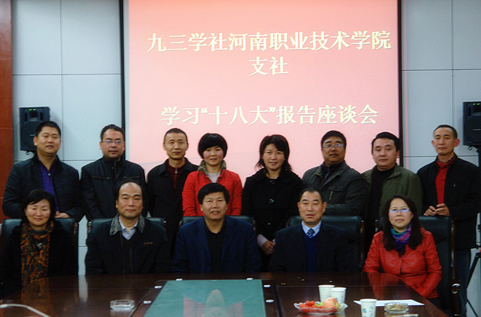 11月12日下午,九三学社河南农业大学委员会河南职业技术学院支社学习十八大报告座谈会在行政楼A303会议室召开。九三学社河南省委常委、河南农业大学委员会主委文才艺,九三学社河南农业大学委员会副主委艾志录应邀出席会议。我院党委宣传部部长孙留欣也应邀参加了会议。会议由九三学社河南农业大学委员会副主委、学院支社主委胡锡凤主持。