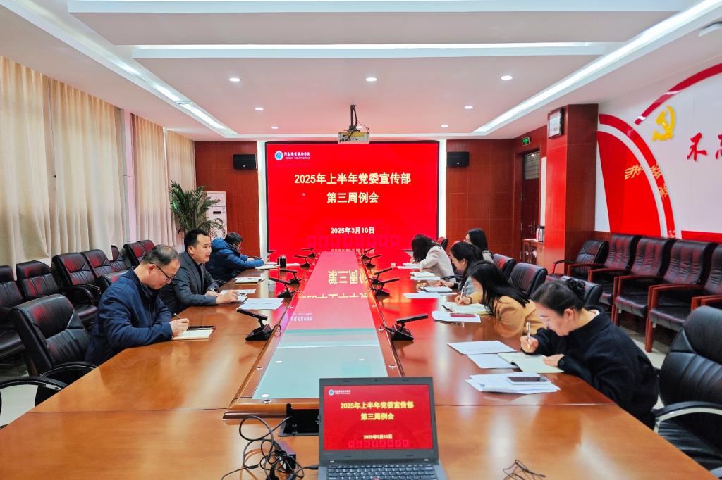 会议指出,宣传部要结合学校2025年春季工作会议精神,聚焦省委、省政府提出的“四高四争先”战略部署,锚定“新双高”创建和职教本科建设目标,全面深化改革,强化内涵建设,突出特色赋能,聚力提升服务经济社会发展能力,奋力谱写学校高质量发展新篇章;要紧紧围绕“4545”党建工作体系,全面加强党的建设,抓实抓细“大思政铸魂工程”,锚定标志性成果,全力确保全年工作目标圆满完成。