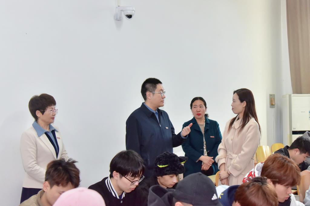 厉励随机听取了樊明光、帖琳娜两位思政课教师讲授的《习近平新时代中国特色社会主义思想概论》课程。听课中,厉励认真记录教师的授课内容与教学方法,细心观察学生的课堂表现及精神风貌,重点对教学实施和课堂效果进行了考察,并对教师授课情况进行评价。课后,厉励与马克思主义学院负责人和授课教师进行深入交流,并针对教师教学内容的深度拓展、教学形式的创新等方面提出了指导意见。