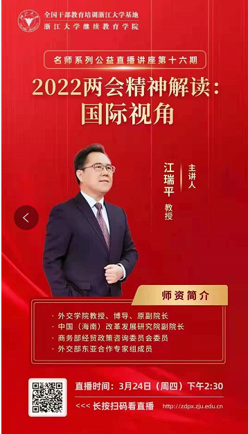 授课人:外交学院教授、博导、原副院长,中国(海南)改革发展研究院副院长江瑞平