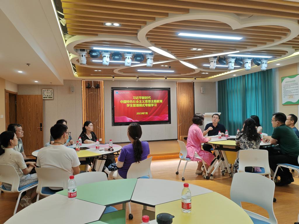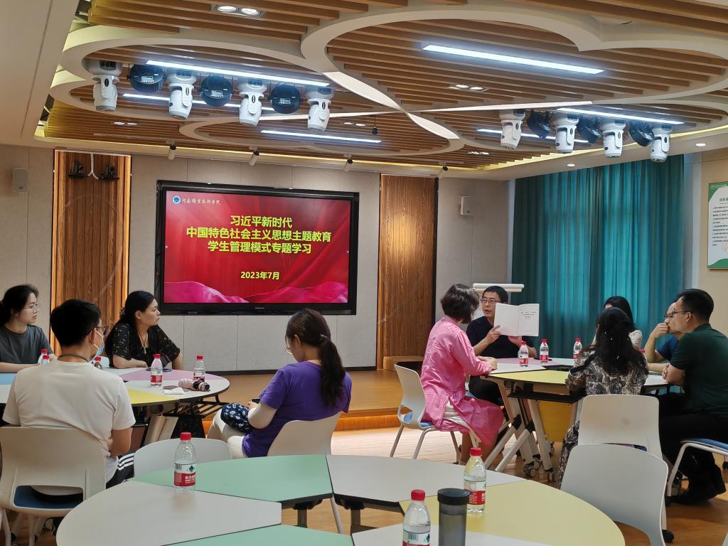 为深入学习贯彻习近平总书记关于教育的重要论述,落实立德树人的根本任务,全面推进“一站式”学生社区综合管理模式建设,7月7日下午,学工部在创业园503室开展习近平新时代中国特色社会主义思想主题教育学生管理模式专题学习。
