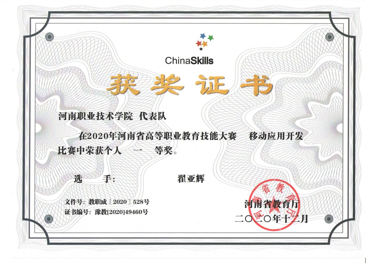 【建设成果】移动应用开发专业经过几年的发展,目前已建成一门《信息技术》课程思政示范课和一门《Android应用开发基础》精品在线开放课程。教师积极参与专业课程云教材和活页式教材建设工作,认真贯彻立徳树人,参与建设课程思政案例库等;本专业学生积极参加全国职业院校技能大赛,并多次获奖。 2017年,全国职业院校技能大赛高职组河南省选拔赛移动互联网应用软件开发,团体二等奖。 2018年,全国职业院校技能大赛高职组河南省选拔赛移动互联网应用软件开发,团体二等奖。 2020年,河南省高等职业教育技能大赛移动应用开发赛项,个人一等奖。