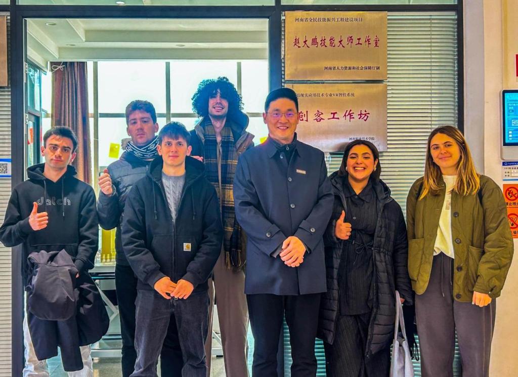 11月19日上午,河南职业技术学院现代信息技术学院迎来了欧洲“中文+职业技能”培训暨“豫见古今 郑好同行”研修项目交流团。现代信息技术学院院长兼党总支书记李纪云、副书记童俊艳、副院长赵大鹏、董俊磊、实训中心主任丁玉涛等共同接待了到访的意大利师生,并陪同他们进行了一场内容丰富、深入务实的参观交流活动。