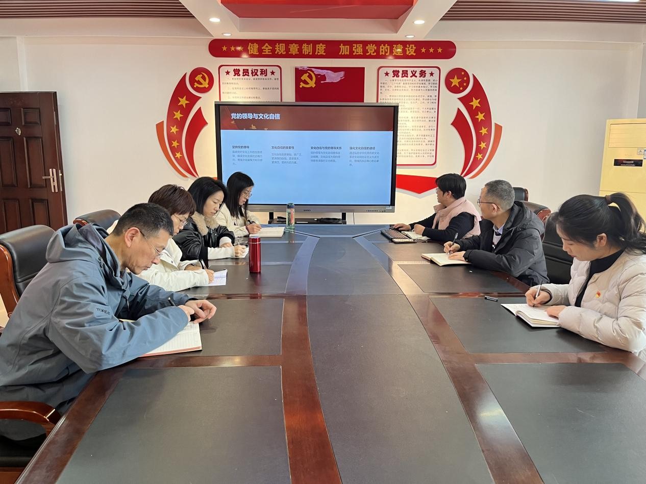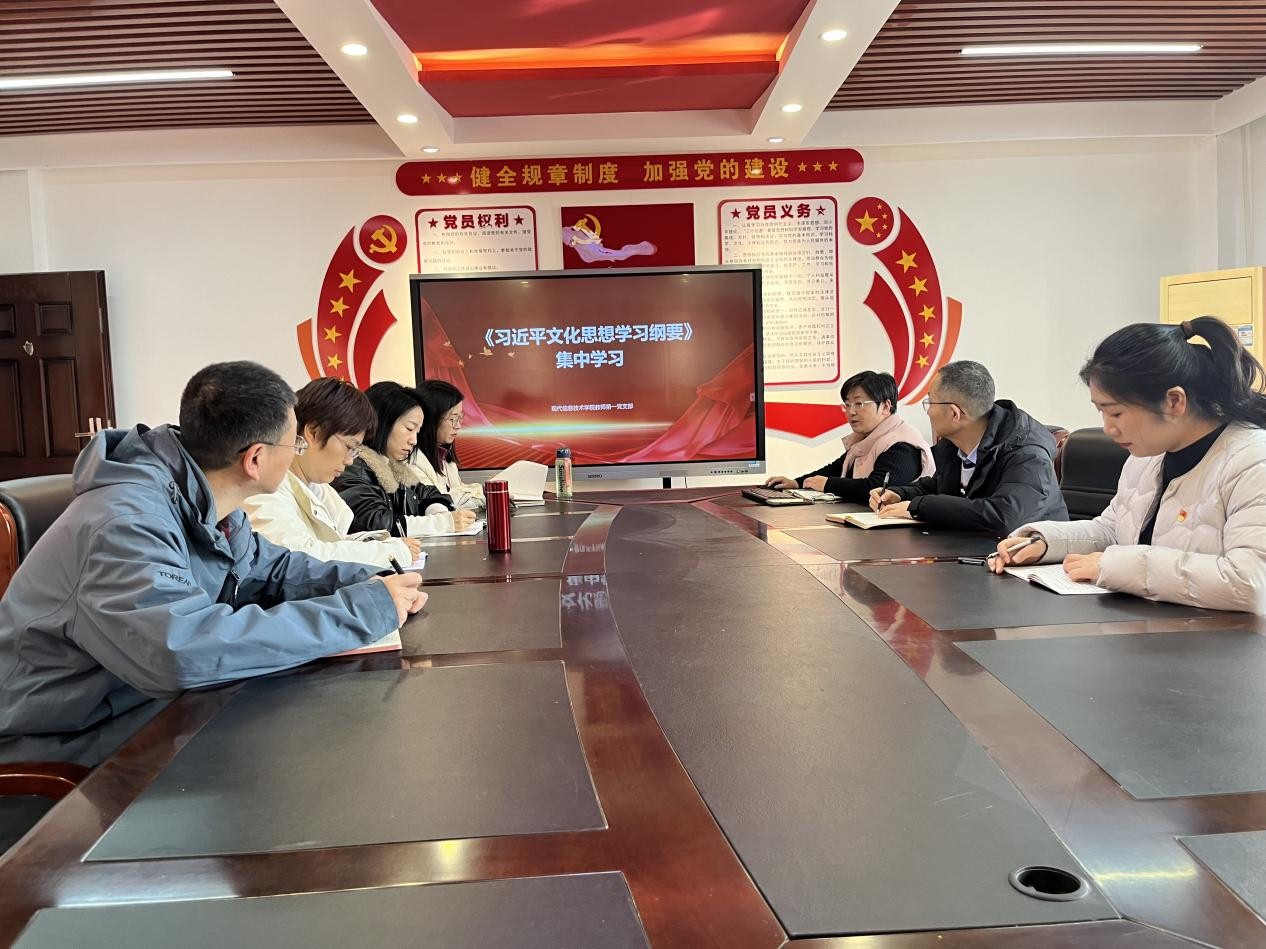 3月6日下午,现代信息技术学院教师第一党支部在笃行楼508会议室开展了《习近平文化思想学习纲要》的集中学习活动。活动由支部书记翟慧主持,全体党员教师均参加了此次学习。