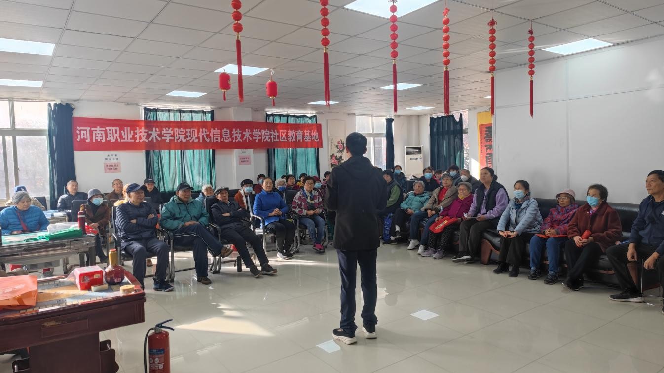 12月7日,河南职业技术学院现代信息技术学院为文苑路社区老年人人开展了一场别开生面的网络安全教育活动。此次活动旨在帮助文苑路社区老年人提升网络安全意识,防范网络风险,以及更好地享受数字化生活带来的便捷。