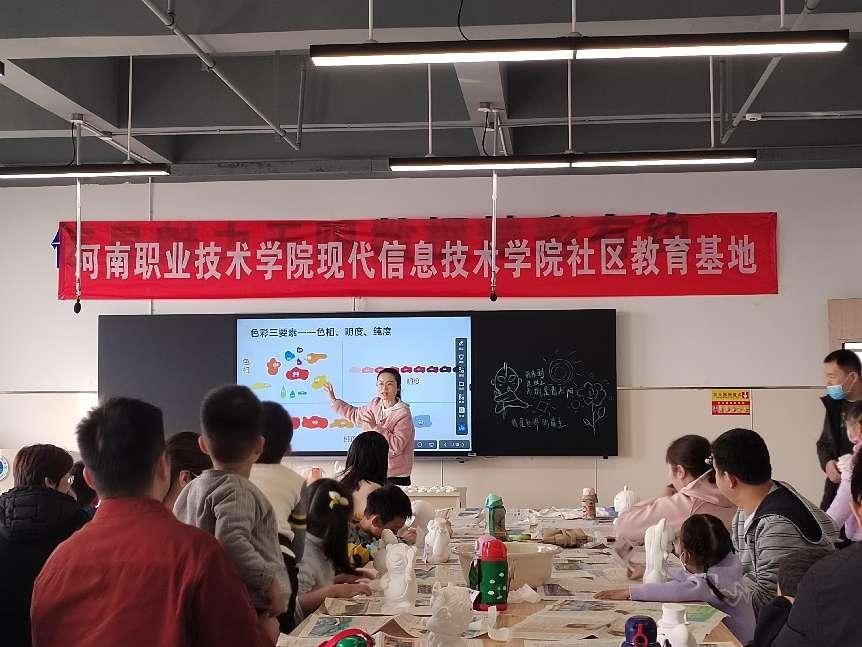 12月9日,河南职业技术学院现代信息技术学院为文苑路社区居民开展专业进社区主题为“少儿色彩启蒙--手绘斑斓,悦趣童年”的技能培训,社区百余位家长和学生参加了本次培训。