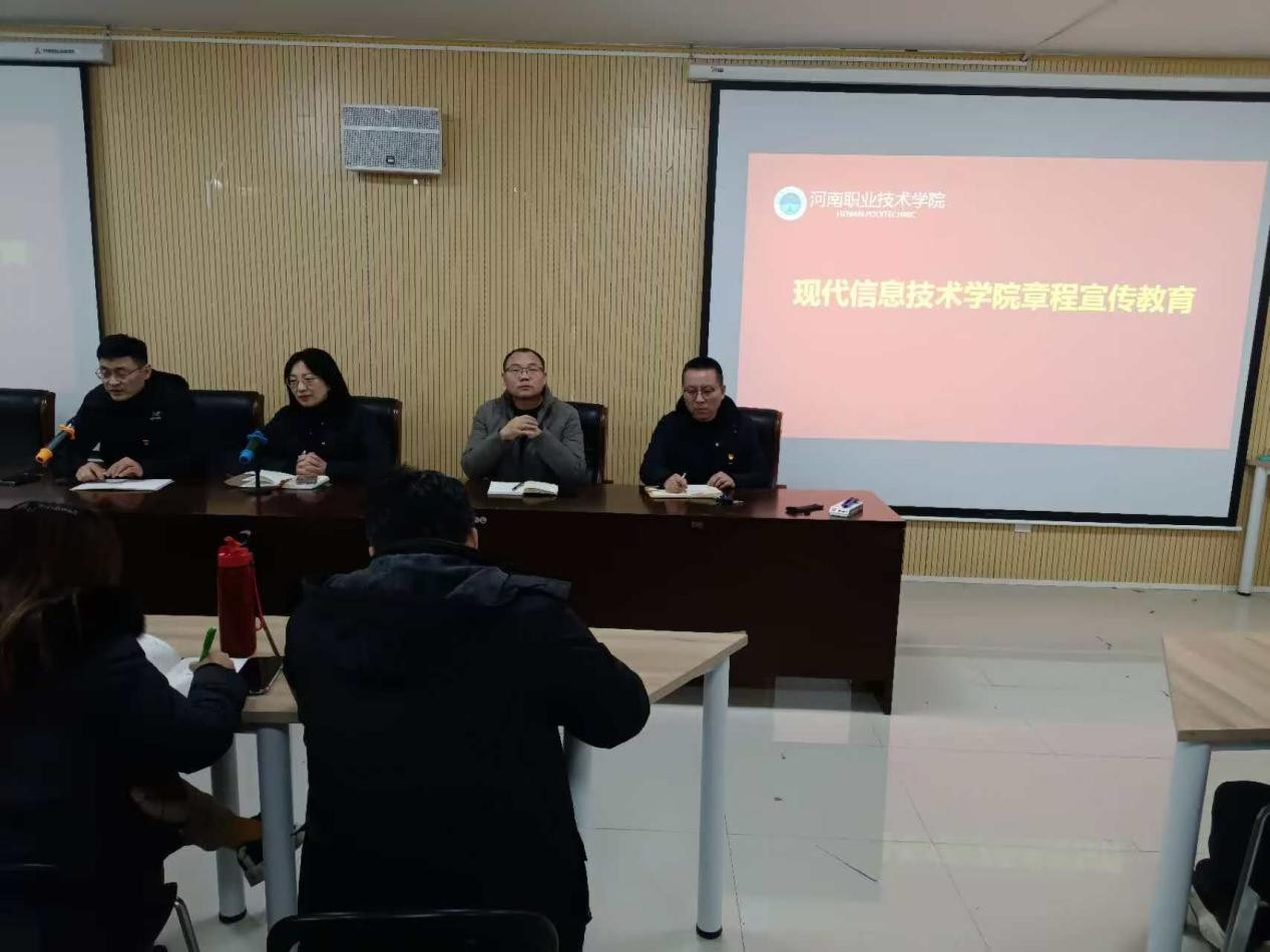 12月31日,河南职业技术学院现代信息技术学院组织开展学院章程宣传会议。此次会议在党总支书记、院长李纪云的主持下顺利举行,全体教师悉数参与。