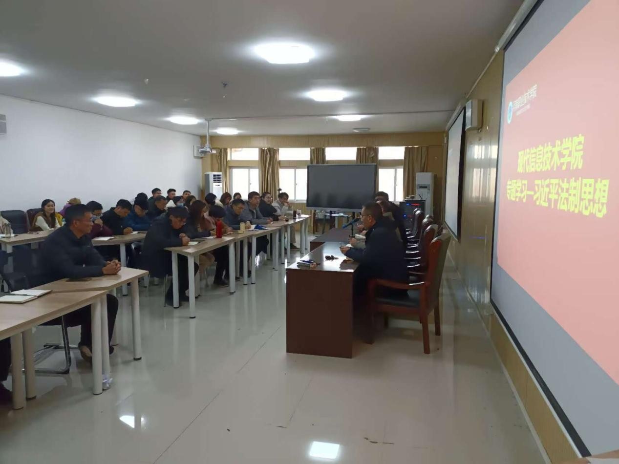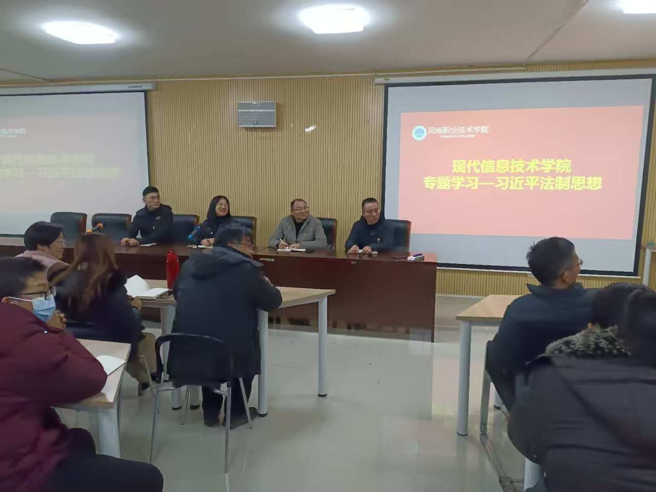 12月31日,现代信息技术学院开展了以“深入学习习近平法治思想”为主题的全院教师学习活动。该活动由学院党总支书记、院长李纪云同志主持,全院教师共同参与了此次活动。