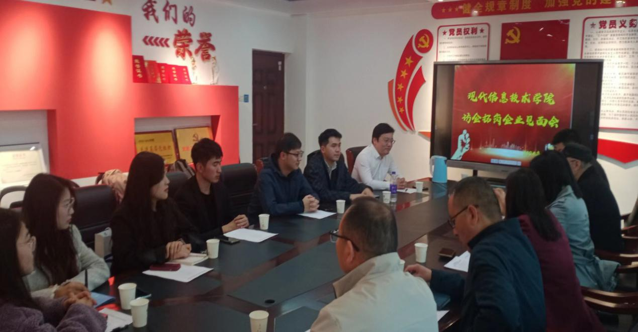 为开拓更多优质就业岗位和实习就业基地,现代信息技术学院于4月2号下午在笃行楼508举行访企拓岗企业见面会,与会企业有:合肥京东方光电科技有限公司,合肥鑫晟光电科技有限公司,合肥京东方显示技术有限公司,北京贪心科技有限公司,浙江欣旺达动力电池有限公司,南京虹启旭食品有限公司,京东方人才确保中心,北京国信创科投资管理有限公司等,学院班子成员和毕业班辅导员参加。