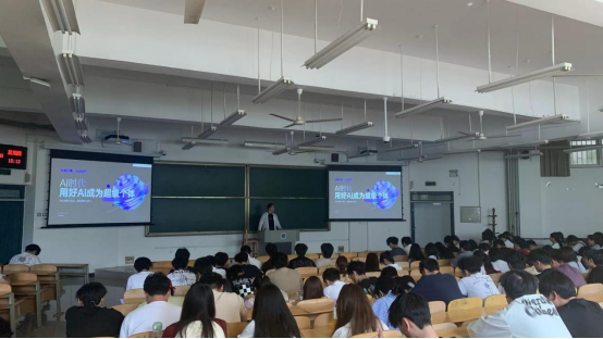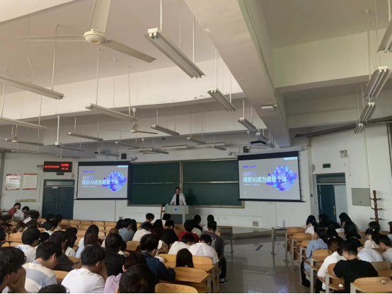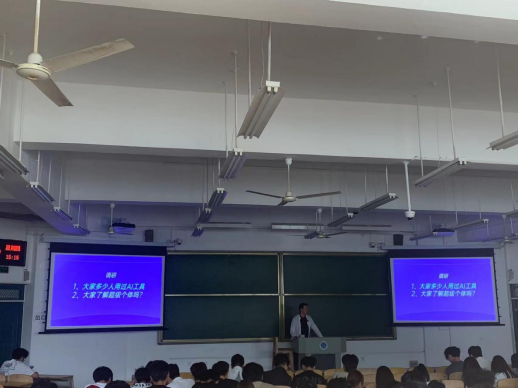 李晨龙首先通过一个思考问题我们想在大学获得什么来吸引同学们的共鸣,可以很好的提高学生们的注意力也能有互动,从业务范围到技术领域,从人才培养到开发创新结合自己的大学经历和创业经验对大学生进行了调研。同时抛出了两个问题:大家多少人用工AI工具?大家了解超级个体吗?引发同学的思考并对此产生了兴趣。