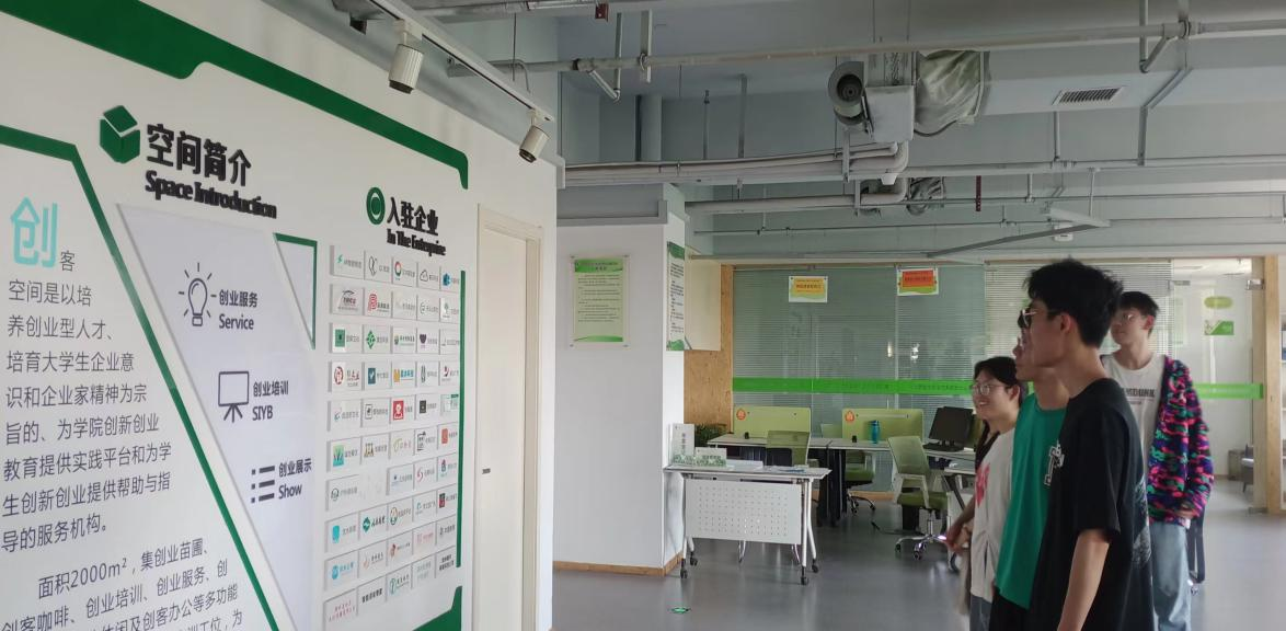 随后在学生讲解员的引领下,同学们参观了双创荣誉墙、竞赛指导区、项目研讨区、创客咖啡空间及其余独立运营空间等区域,近距离接触各学院优秀双创成果,了解创新创业竞赛及大创项目的参与和培育模式,掌握学校双创工作相关政策。大学生创新创业孵化园是很好的创新创业人才服务平台,旨在培养学生的创新和创业能力。