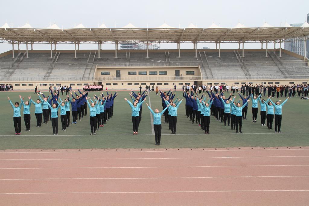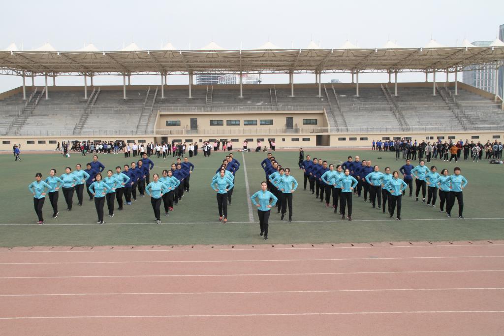 2019年3月28日,河南职业技术学院教职工第九套广播体操比赛校体育场开赛。我院50余名教职工组成的比赛方队以总分第二名的成绩获得二等奖。
