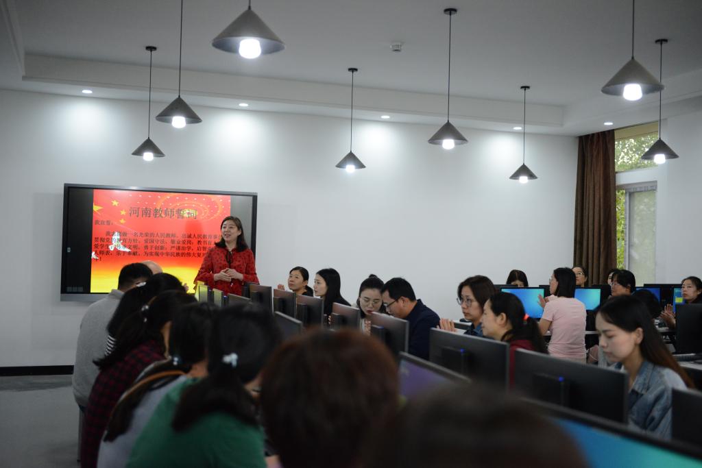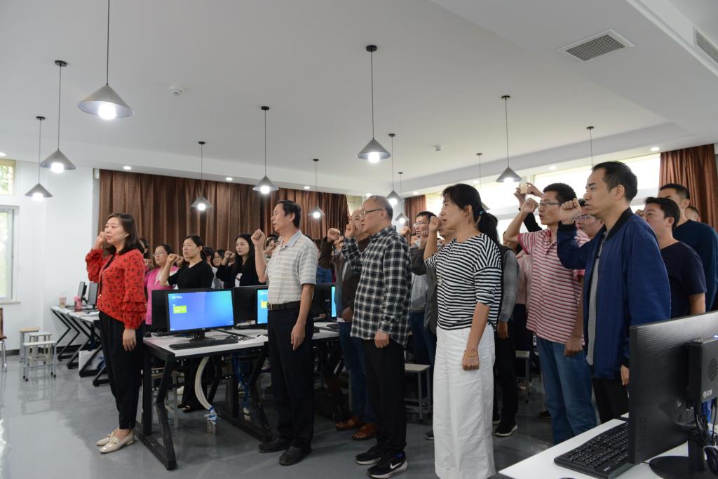 三尺讲台育桃李,教书育人谱芳华。为庆祝第35个教师节,大力营造我校“尊师重教,树人树德”的浓厚氛围,信息工程学院开展教师节宣誓活动。在张滨燕院长的带领下,我院全体教职工高举右手,齐诵教师誓词“我志愿做一名光荣的人民教师,忠诚人名教育事业,贯彻党的教育方针……”,铮铮誓言久久回荡在美丽的校园。宣誓仪式结束,张滨燕院长又向各位老师提出了“坚守初心,牢记誓言”的要求,希望老师们在新学期的工作中围绕落实立德树人的根本任务,拓宽思路,提升自我,在创新中务实,在反思中成长,在坚守中不断前进。(供稿:贾莉审稿:李纪云)