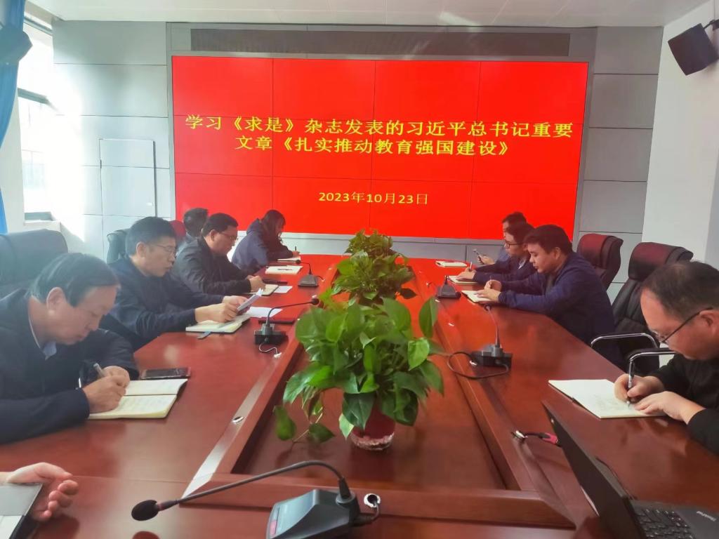 信息中心主任谭营军带领大家共同学习了《求是》杂志发表的习近平总书记重要文章《扎实推动教育强国建设》。党的二十大报告把教育科技人才单独成章进行布局,吹响了加快建设教育强国的号角。我们要建设的教育强国,是中国特色社会主义教育强国,必须以坚持党对教育事业的全面领导为根本保证,以立德树人为根本任务,以为党育人、为国育才为根本目标,以支撑引领中国式现代化为核心功能,最终是办好人民满意的教育。