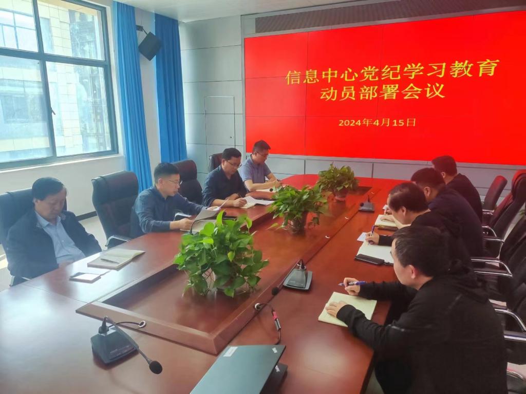 4月15日,信息中心党支部在电教楼412会议室召开支部党员大会,安排部署党纪学习教育,会议由党支部书记谭营军主持。