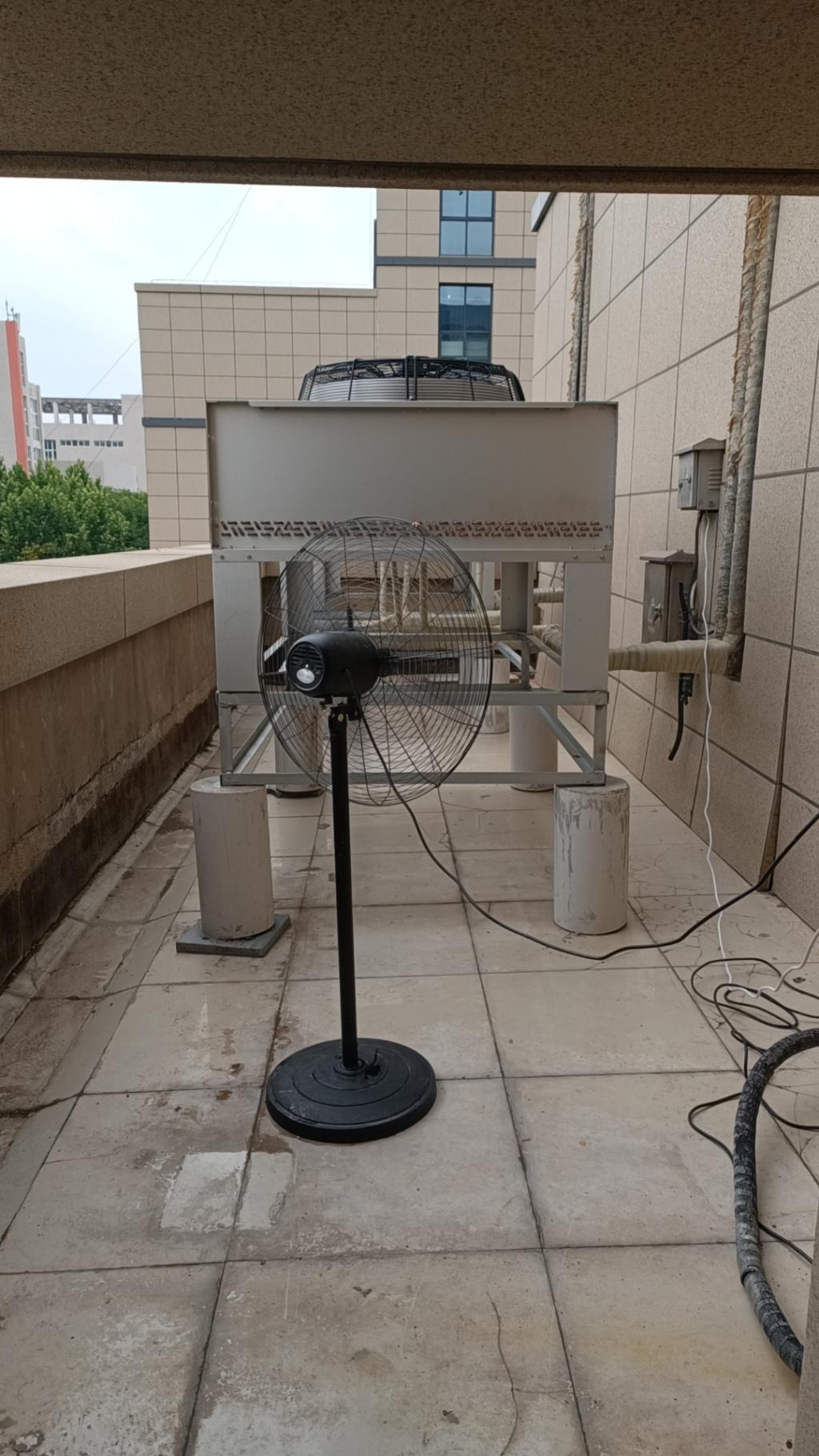 面对极端情况,中心网络管理工作人员积极应对,加强对机房的巡查维护力度,同时增加了对精密空调的维护频次。运维工作人员顶着炎炎烈日连续多次对室外机进行清洗,并安装工业风扇降低室外机温度。在保障安全的前提下拆装和清洗精密空调室外机,并对顶层平台环境空调室外机进行除尘操作。