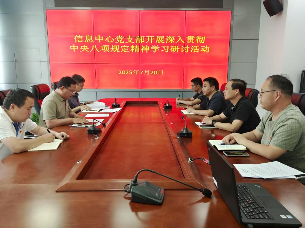 7月20日下午,信息中心党支部在慧行楼412开展深入贯彻中央八项规定精神学习研讨活动,党支部书记赵建峰主持会议,全体党员参加学习。