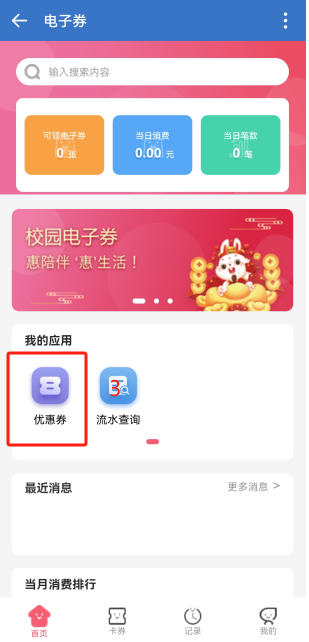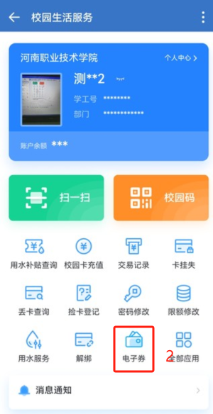 教职工用餐专项补贴优惠券数量及日常交易使用情况,可在企业微信“一卡通”中进行查询。查看补贴优惠券的方法:登录学校企业微信,选择工作台-一卡通-电子券-优惠券查看个人补贴数量。