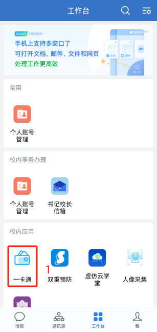 学校教职工餐厅于5月20日恢复营业,教职工可持物理校园卡或者企业微信中的一卡通校园码进行消费。