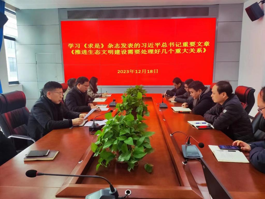 党支部书记谭营军带领大家共同学习了《求是》杂志发表的习近平总书记重要文章《推进生态文明建设需要处理好几个重大关系》。文章指出,实现碳达峰碳中和,等不得也急不得,不可能毕其功于一役,必须坚持稳中求进、逐步实现,决不能搞“碳冲锋”、“运动式减碳”。要立足国情,坚持先立后破,加快规划建设新型能源体系,确保能源安全。要优化调整产业结构,大力发展绿色低碳产业,使发展建立在高效利用资源、严格保护生态环境、有效控制温室气体排放的基础上。要以更加积极的姿态参与全球气候治理,形成更加主动有利的新局面。