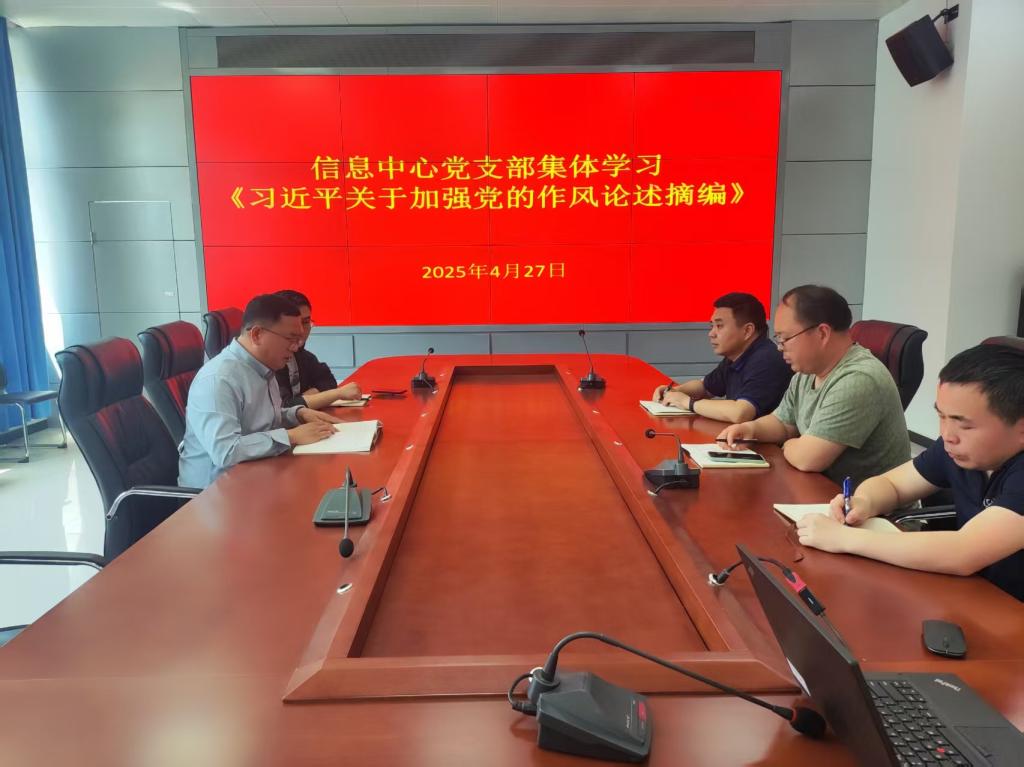 会上,信息中心党支部书记赵建峰领学《习近平关于加强党的作风建设论述摘编》,同志们围绕第四章中央八项规定是改进作风的切入口和动员令,是长期有效的铁规矩、硬杠杠进行原文学习。与会人员深入学习领会习近平总书记关于加强党的作风建设的重要论述精神,准确把握全面从严治党的形势任务,增强开展学习教育的责任感、紧迫感,把学习教育作为一次思想洗礼、政治体检、作风锤炼。坚持事业为上,崇尚实干、追求实绩、狠抓落实,持续营造风清气正、干事创业的政治生态,落实好立德树人根本任务。