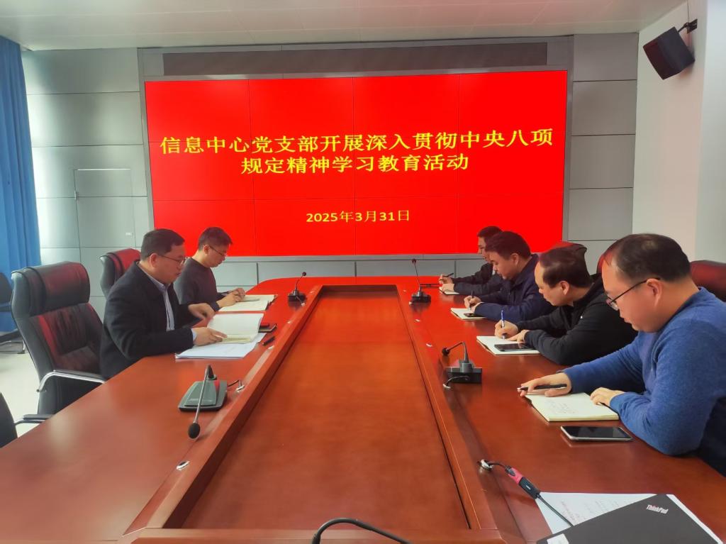 按照学校党委统一部署,3月31日上午,信息中心党支部在电教楼412会议室开展深入贯彻中央八项规定精神专题学习活动。会议由信息中心负责人、党支部书记赵建峰主持,全体党员参加。