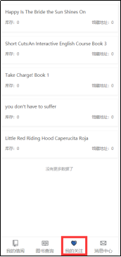 功能,可以查看借阅记录、关注列表展示、消息提醒功能