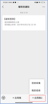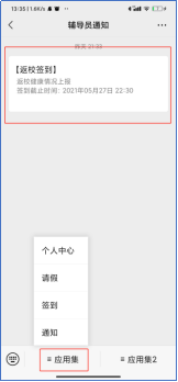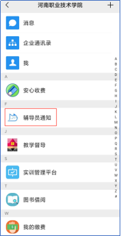 关注我校企业微信公众号,进入企业后,点击辅