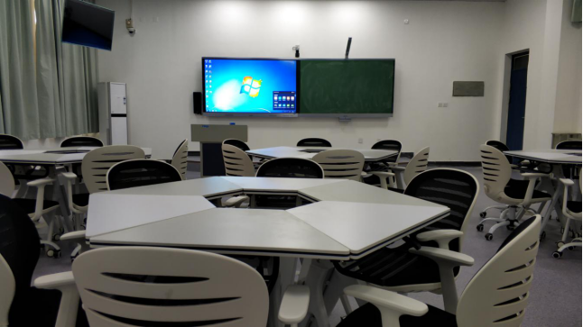 智慧教室是实现师生交互式讨论教学模式,探索教师对教学方法、教学理念、教学手段改革与信息技术更紧密融合的教学环境平台。我校现建成有24间智慧教室,一间集控中心。每间教室均配置录播系统,可按教师需求对课堂教学进行实时录播,能够用于学生课后复习及教师教学情境回溯;每间教室配备任意组合摆放形式的活动课座椅和显示屏的无线接入系统,可实现学习小组间互动交流;教室安装了触摸大屏,可实现触控互动、多媒体教学和粉笔书写,将传统教学黑板和可感知的互动黑板无缝对接;每间教室安装了刷卡门禁系统、教室设备集中控制系统,并与教务系统对接,能识别上课师生权限、收集实时教学数据,全面提高教学服务及教学管理水平。