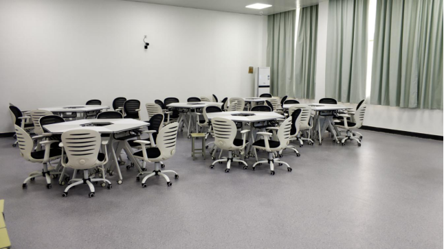 圆桌讨论形式的教室布局适合团队型课程项目开展;方便教师在课堂走动与学生形成互动,激发学生积极参与话题讨论的积极性。